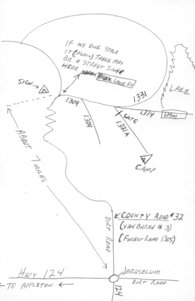 Hand drawn map of the dirt road leading back to the riding area. Do NOT believe the camp designation yet. I still need to figure that out. But this will give you a good idea of where the riding area is. I'm suppose to go riding there for the first time later this month so I'll try to get GPS coordinates, etc and post them.