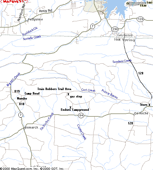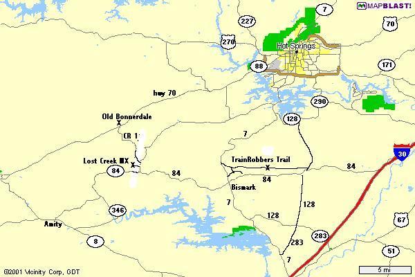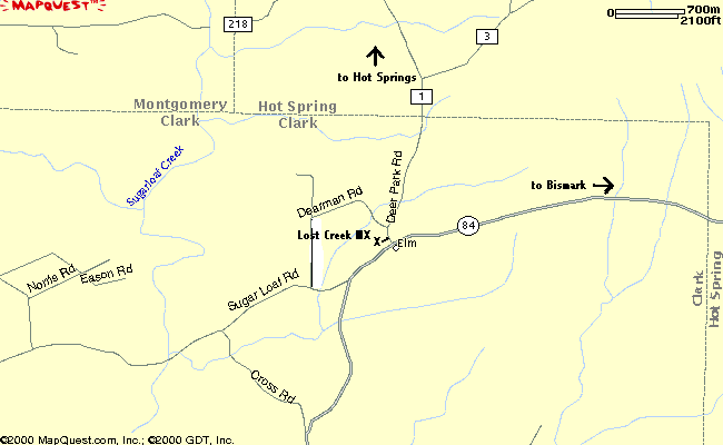 Jim Cook gave me directions from Bismarck/TR trails over to Lost Creek, for anyone wanting to go the MX track. Take 84 West from Bismarck. Go 12 miles to Deer Park Road and turn right. Go about 100 yards (I think it's a left) onto Dearman Road which is gravel. That road runs into Lost Creek.